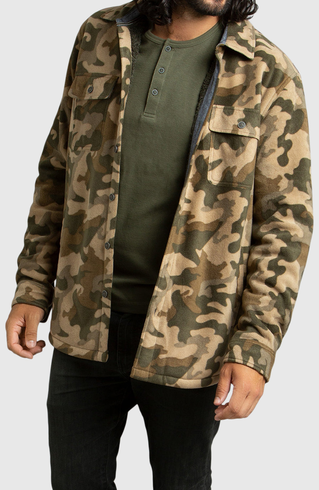 Army Green Polar Fleece Shirt Jacket